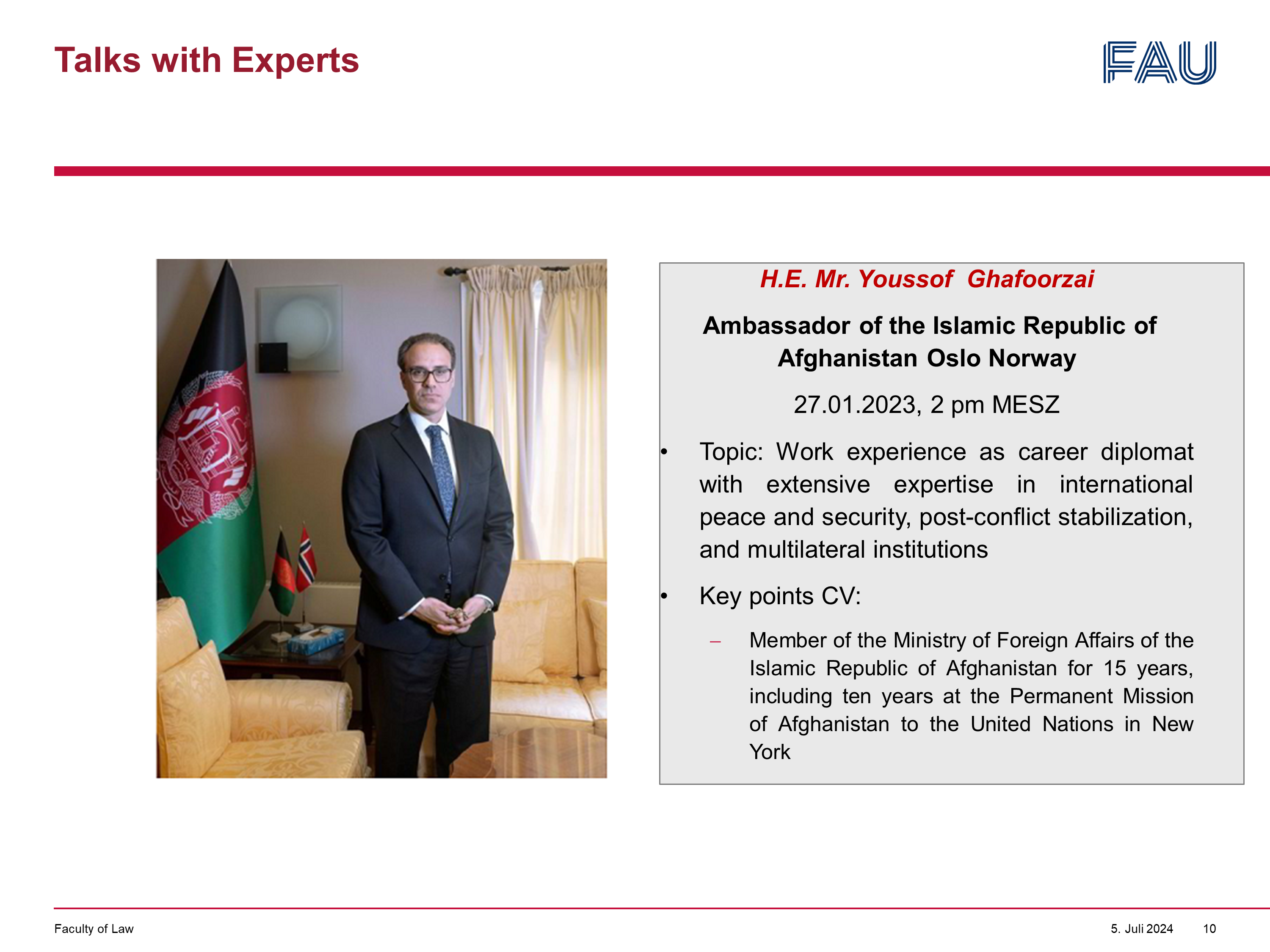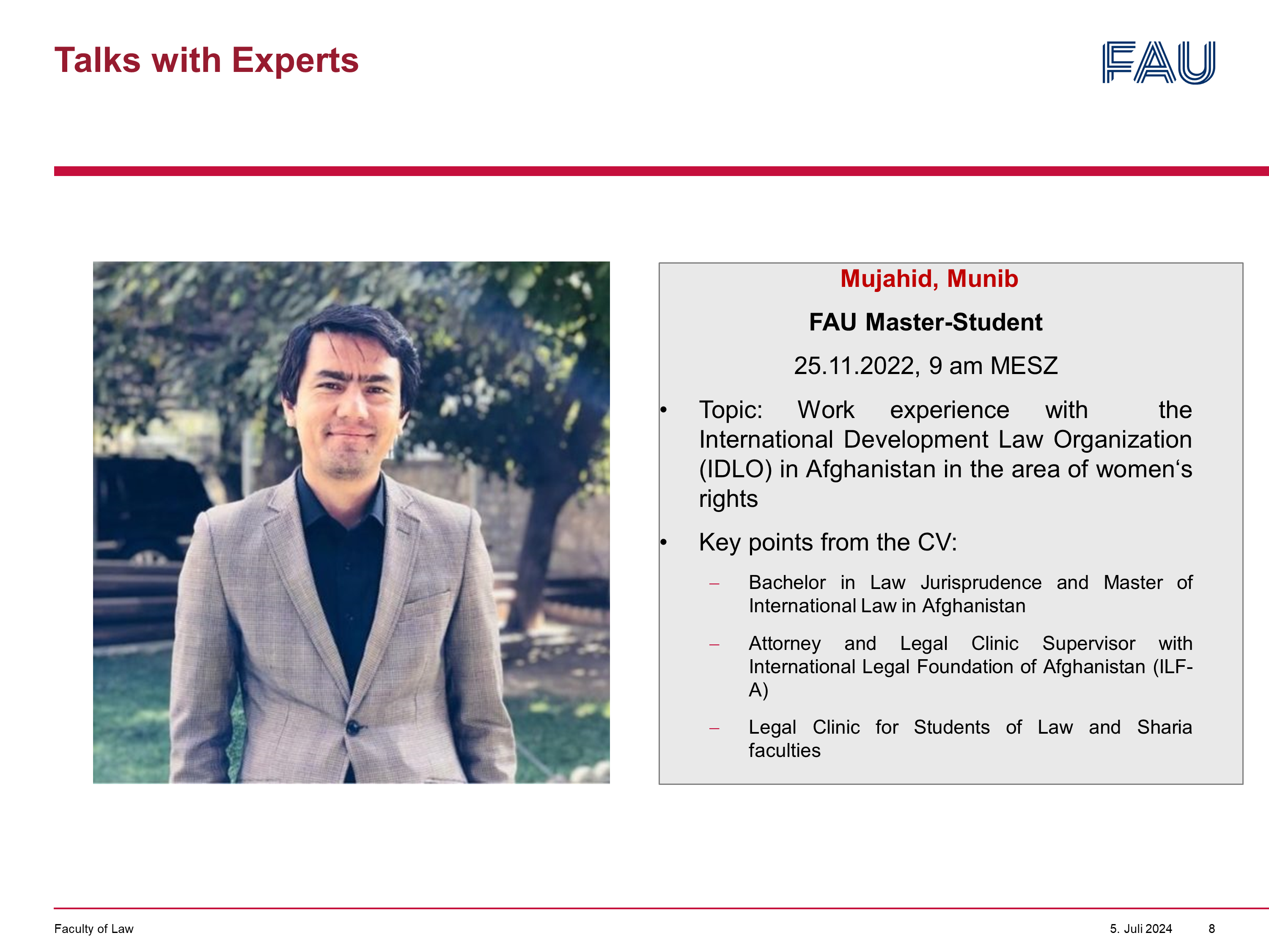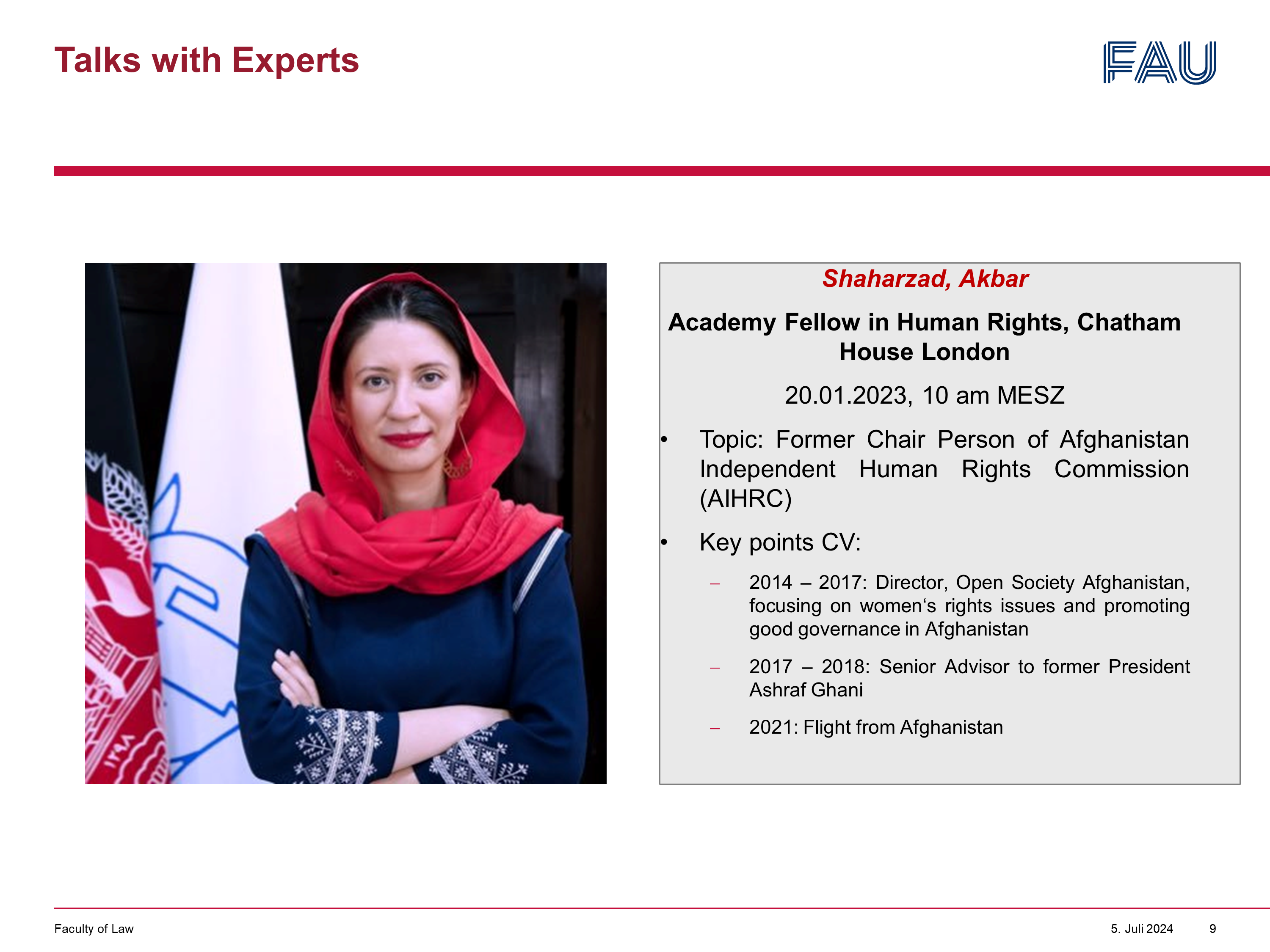 We are delighted to announce that another successful and exciting round of the „FAU Human Rights Talks“ took place! Student groups had the opportunity to discuss with human rights experts on the topic “The Forgotten: Women’s Rights in Afghanistan”. We had the honour to exchange views with …